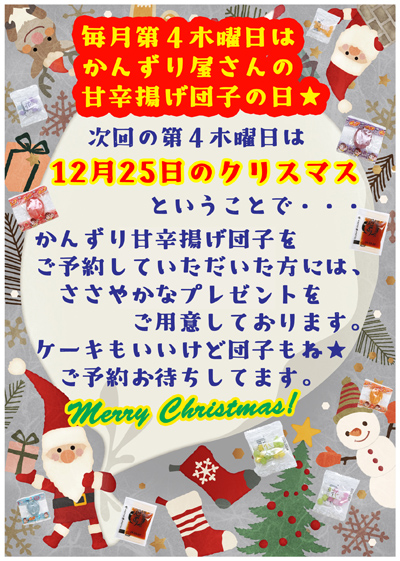 毎月第4木曜日は「かんずり揚げ団子の日」!次回は12月25日(木)11時00分より「かんずり屋さんの甘辛揚げ団子」を販売します。